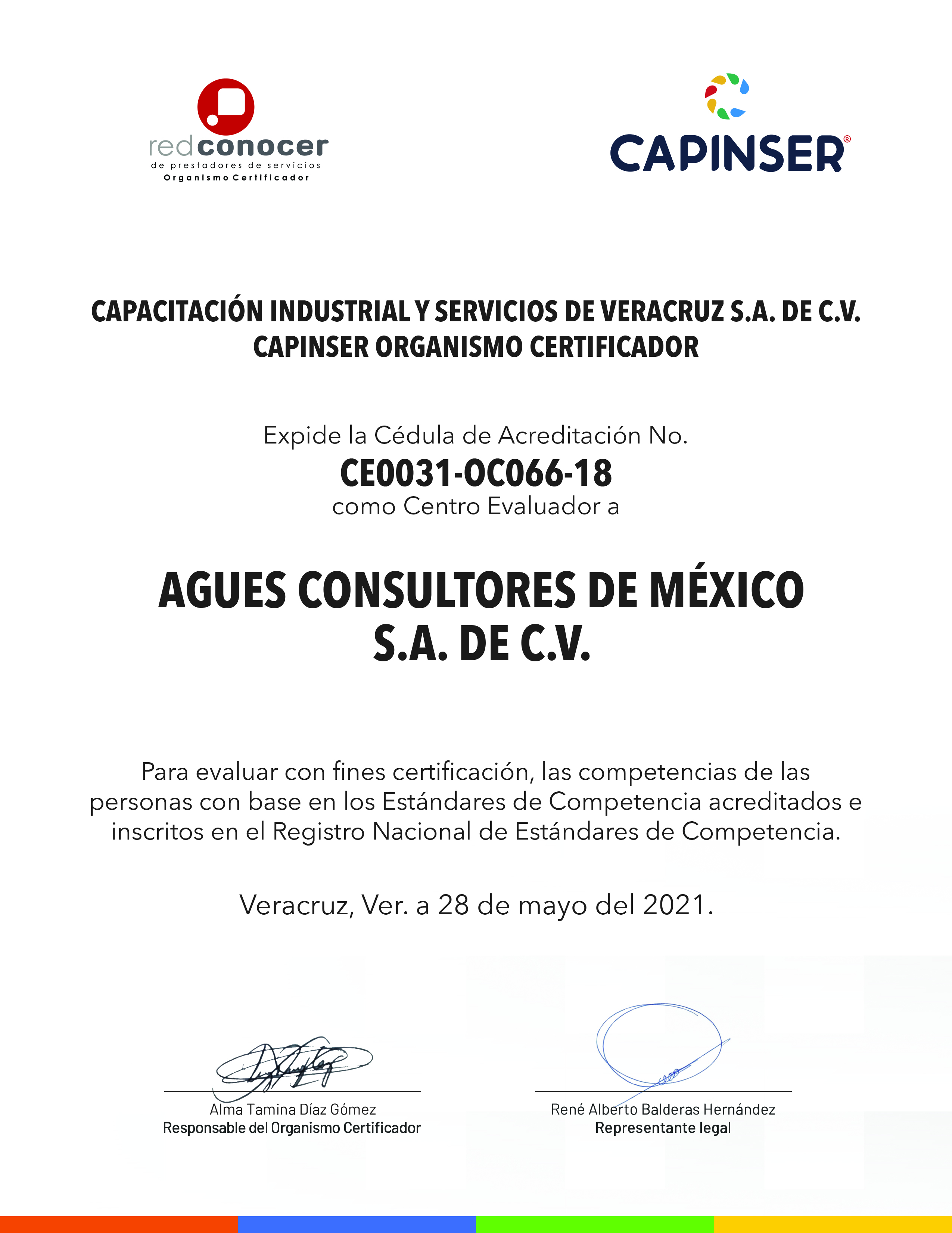 CENTRO EVALUADOR DEL ORGANISMO CERTIFICADOR CAPINSER CÉDULA DE ACREDITACIÓN CE0031-OC066-18 AGUES ESTÁNDARES ACREDITADOS EC0217.01 EC0307.01 EC0397.01 EC1092