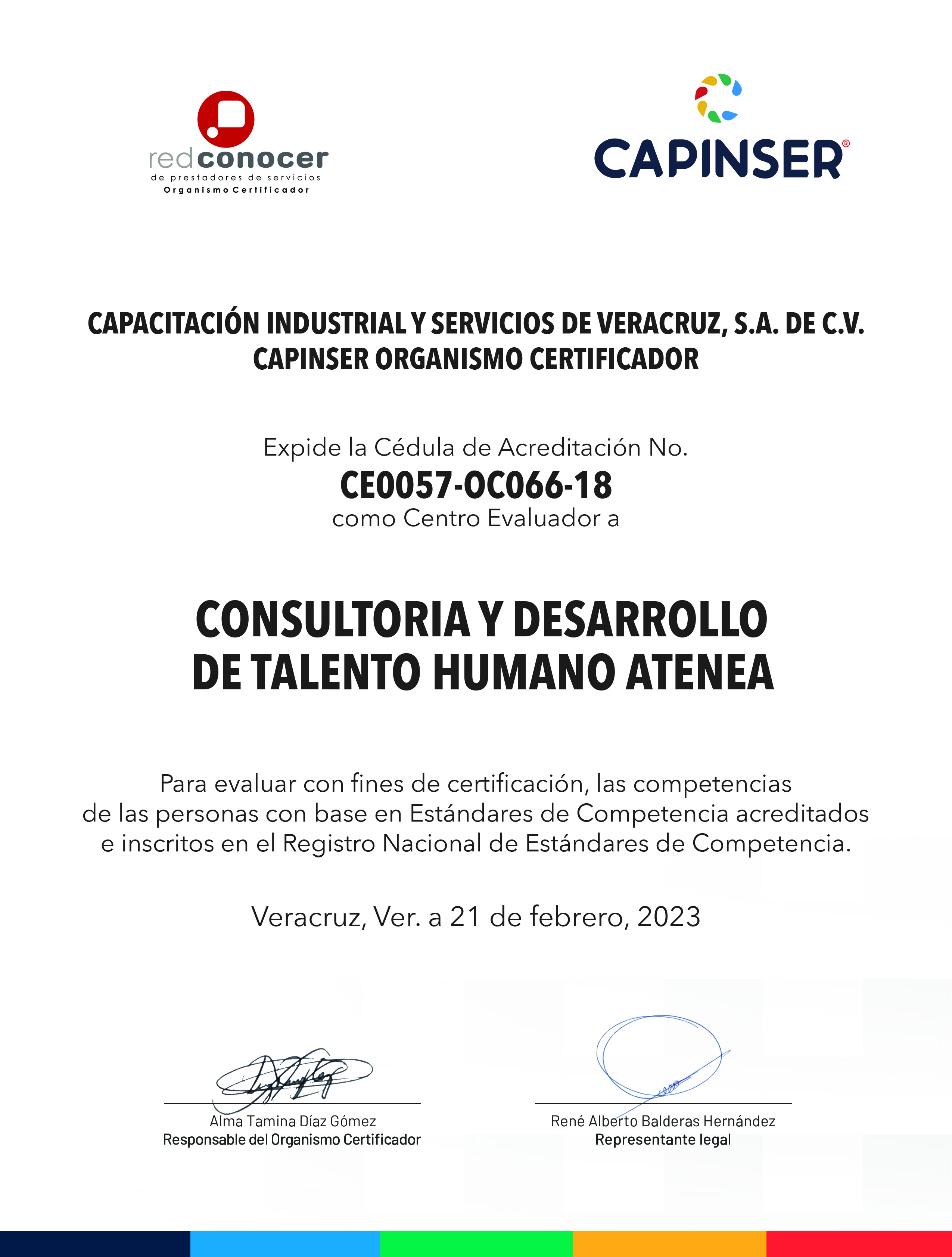 CENTRO EVALUADOR DEL ORGANISMO CERTIFICADOR CAPINSER CÉDULA DE ACREDITACIÓN CE0057-OC066-18 ATENEA ESTÁNDARES ACREDITADOS EC0217.01 EC0301