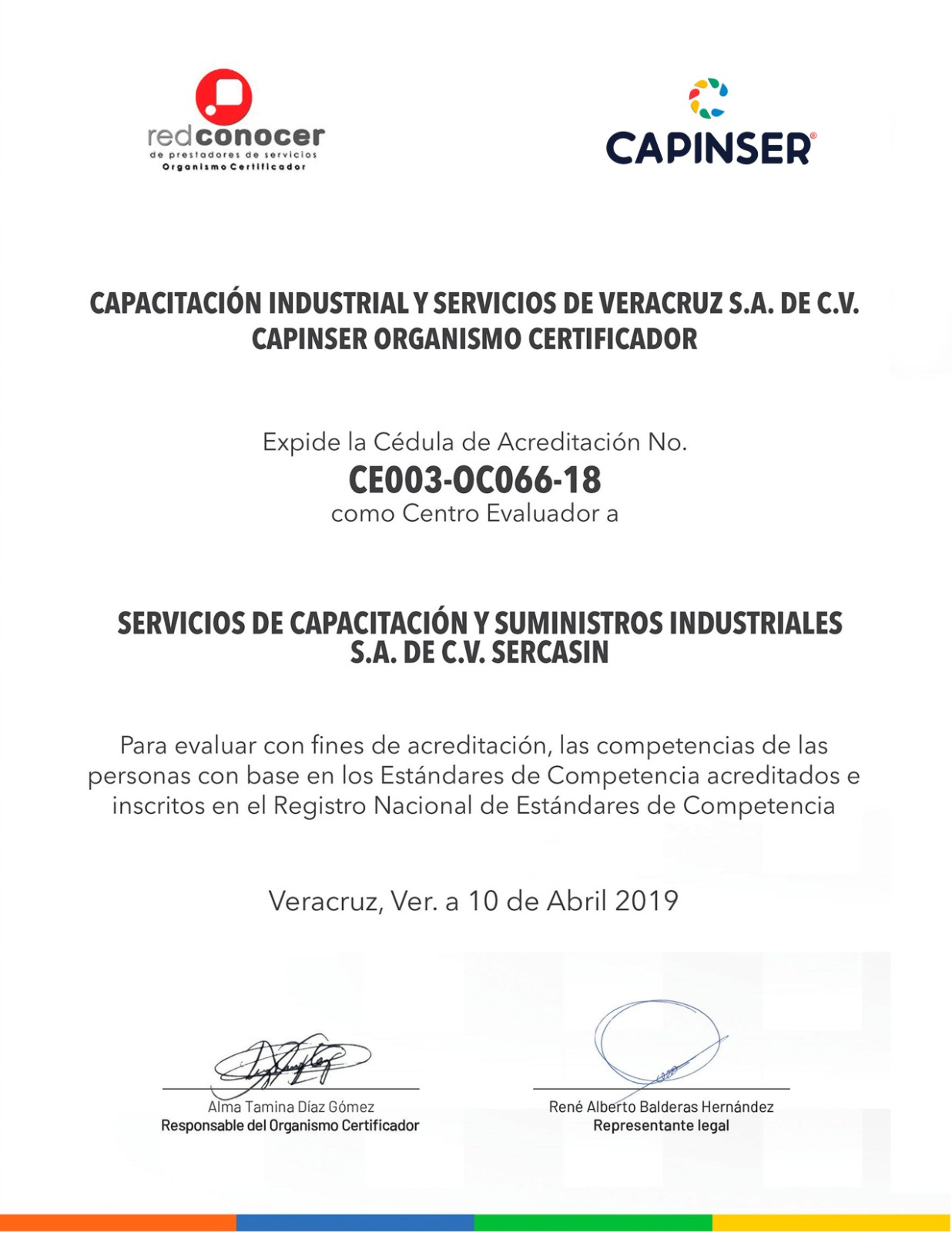 CENTRO EVALUADOR DEL ORGANISMO CERTIFICADOR CAPINSER CÉDULA DE ACREDITACIÓN CE0003-OC066-18 SERCASIN ESTÁNDARES ACREDITADOS EC0060 EC0217.01 EC0301 EC0397.01 EC0443 EC0532 EC0591 EC0680 EC0891