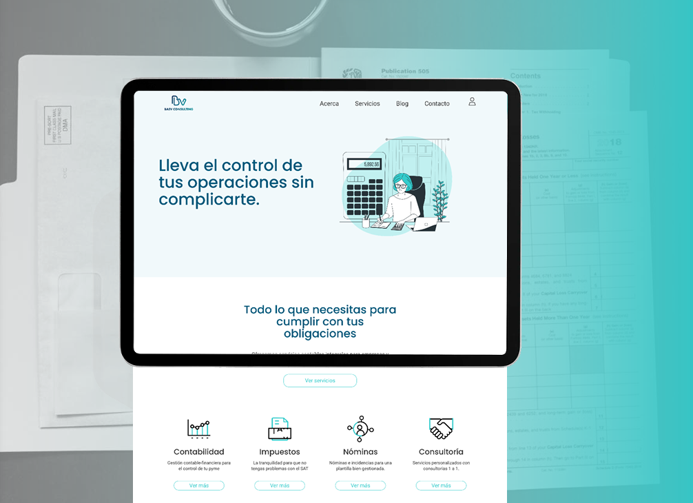 Se diseñó y desarrolló el sitio web corporativo de BAEV con un enfoque visual fresco, accesible y humano. El objetivo fue diferenciar a la marca del estilo rígido típico de firmas contables, creando una experiencia clara, confiable y orientada a la captación de clientes digitales.